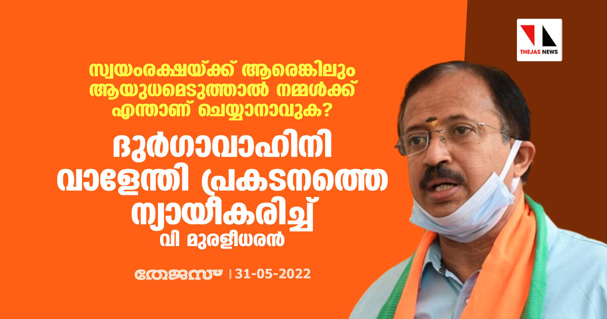 സ്വയംരക്ഷയ്ക്ക് ആരെങ്കിലും ആയുധമെടുത്താൽ നമ്മൾക്ക് എന്താണ് ചെയ്യാനാവുക?; ദുർഗാവാഹിനി വാളേന്തി പ്രകടനത്തെ ന്യായീകരിച്ച് വി മുരളീധരൻ