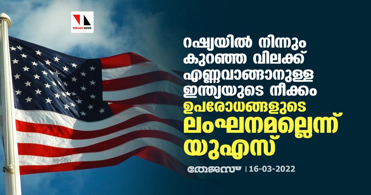 റഷ്യയില് നിന്നും കുറഞ്ഞ വിലക്ക് എണ്ണവാങ്ങാനുള്ള ഇന്ത്യയുടെ നീക്കം ഉപരോധങ്ങളുടെ ലംഘനമല്ലെന്ന് യുഎസ്
