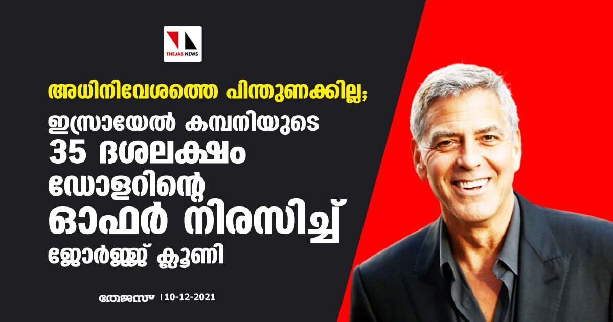 അധിനിവേശത്തെ പിന്തുണക്കില്ല; ഇസ്രായേല് കമ്പനിയുടെ 35 ദശലക്ഷം ഡോളറിന്റെ ഓഫര് നിരസിച്ച് ജോര്ജ്ജ് ക്ലൂണി