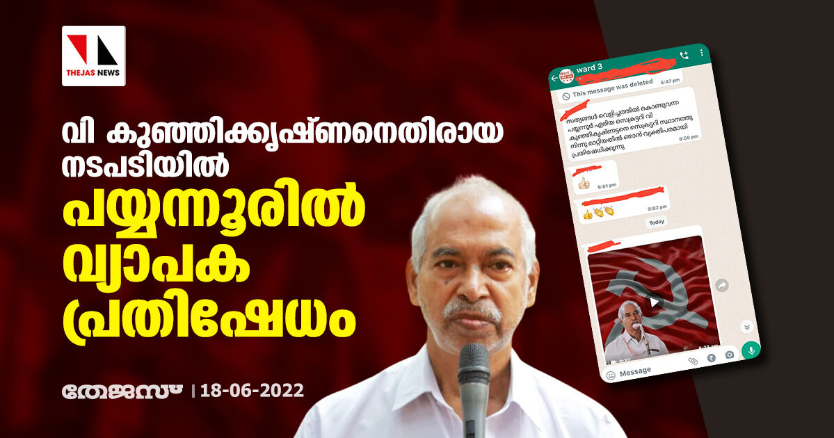 വി കുഞ്ഞിക്കൃഷ്ണനെതിരായ നടപടിയിൽ പയ്യന്നൂരിൽ വ്യാപക പ്രതിഷേധം