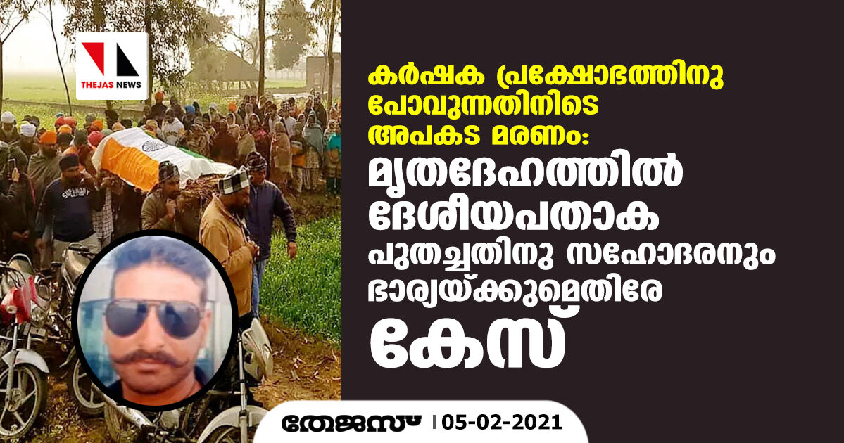 കര്ഷക പ്രക്ഷോഭത്തിനു പോവുന്നതിനിടെ അപകട മരണം: മൃതദേഹത്തില് ദേശീയപതാക പുതച്ചതിനു സഹോദരനും ഭാര്യയ്ക്കുമെതിരേ കേസ്
