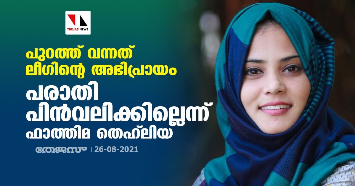പുറത്ത് വന്നത് ലീഗിന്റെ അഭിപ്രായം; പരാതി പിന്വലിക്കില്ലെന്ന് ഫാത്തിമ തെഹ്ലിയ