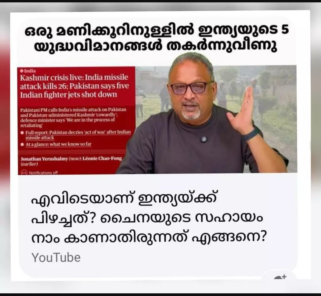 മാത്യു സാമുവലിന്റെ യുദ്ധവിമാന വീഡിയോ തടഞ്ഞ് യൂട്യൂബ്; കേന്ദ്രസര്ക്കാര് ആവശ്യപ്രകാരമാണ് നടപടി