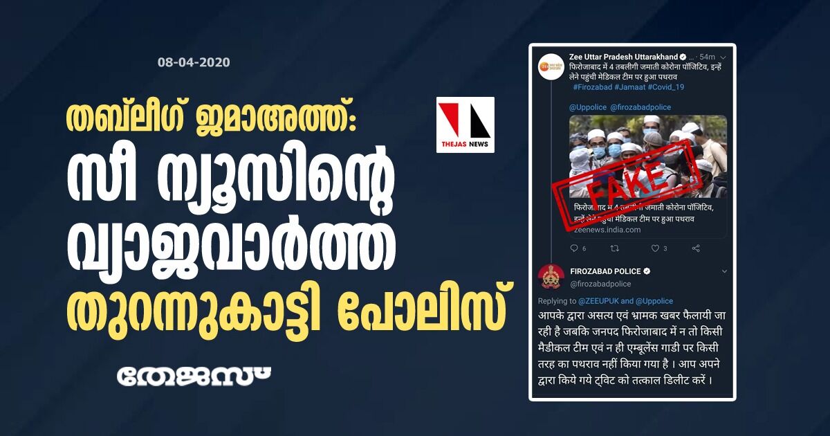 തബ്ലീഗ് ജമാഅത്ത്: സീ ന്യൂസിന്റെ വ്യാജവാര്ത്ത തുറന്നുകാട്ടി പോലിസ്