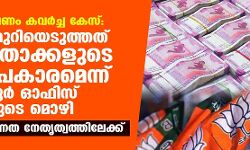 ബിജെപി കള്ളപ്പണം കവര്ച്ച കേസ്: ഹോട്ടലില് മുറിയെടുത്തത് ജില്ലാ നേതാക്കളുടെ നിര്ദേശപ്രകാരമെന്ന് പാര്ട്ടി തൃശൂര് ഓഫിസ് സെക്രട്ടറിയുടെ മൊഴി, അന്വേഷണം ഉന്നത നേതൃത്വത്തിലേക്ക്
