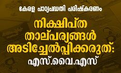 16 Nov 2022 3:50 AM GMTകോഴിക്കോട്: കേരള പാഠ്യപദ്ധതി പരിഷ്കരണത്തിനെതിരേ കാന്തപുരം സുന്നി വിഭാഗം യുവജനസംഘടനയായ എസ്.വൈ.എസ്. രംഗത്ത്.കേരള പാഠ്യപദ്ധതി പരിഷ്കരണത്തിന്റെ മറവില് ഏ...