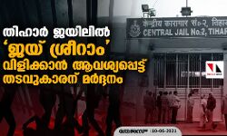 10 Jun 2021 1:48 PM GMTന്യൂഡല്ഹി: 'ജയ് ശ്രീറാം' വിളിക്കാന് ആവശ്യപ്പെട്ട് തിഹാര് ജയിലില് തടവുകാരനെ സഹതടവുകാര് മര്ദ്ദിച്ചു. ഐഎസ് ബന്ധം ആരോപിച്ച് 2018ല് അറസ്റ്റ് ചെയ്ത റാ...