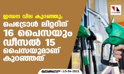 ഇന്ധന വില കുറഞ്ഞു; പെട്രോള് ലിറ്ററിന് 16 പൈസയും ഡീസല് 15 പൈസയുമാണ് കുറഞ്ഞത്