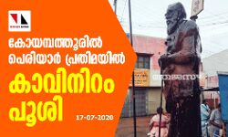 കോയമ്പത്തൂരില് പെരിയാര് പ്രതിമയില് കാവിനിറം പൂശി