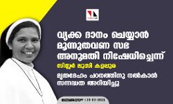 വൃക്ക ദാനം ചെയ്യാന് മൂന്നുതവണ സഭ അനുമതി നിഷേധിച്ചെന്ന് സിസ്റ്റര് ലൂസി കളപ്പുര