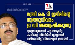 മന്ത്രി കെ ടി ജലീലിന്റെ സ്വത്തുവിവരം ഇ ഡി അന്വേഷിക്കുന്നു; ദൃശ്യമാധ്യമങ്ങള് പുറത്തുവിട്ട കാറിന്റെ സിസിടിവി ദൃശ്യങ്ങള് പരിശോധിച്ച് സ്പെഷ്യല് ബ്രാഞ്ച്
