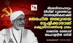 മിശ്രവിവാഹവും ലിവിങ് ടുഗെതറും സാര്വത്രികമാക്കി മതരഹിത തലമുറയെ സൃഷ്ടിക്കാനാണ് കമ്മ്യൂണിസത്തിന്റെ ശ്രമം: സമസ്ത നേതാവ് ബഹാഉദ്ദീന് നദ്വി