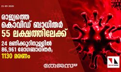 രാജ്യത്തെ കൊവിഡ് ബാധിതര് 55 ലക്ഷത്തിലേക്ക്; 24 മണിക്കൂറിനുള്ളില് 86,961 രോഗബാധിതര്; 1130 മരണം