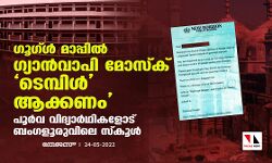 'ഗൂഗ്ള് മാപ്പില് ഗ്യാന്വാപി മോസ്ക് 'ടെമ്പിള്' ആക്കണം'; പൂര്വ വിദ്യാര്ഥികളോട് ബംഗളൂരുവിലെ സ്കൂള്