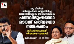 യുപിയില് ബിജെപിയെ വിജയിപ്പിച്ച മായാവതിക്കും ഉവൈസിക്കും പത്മവിഭൂഷണോ ഭാരത് രത്നയോ നല്കണം; പരിഹാസവുമായി ശിവസേനാ നേതാവ്