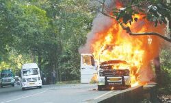താമരശ്ശേരി ചുരത്തില് ടെമ്പോ ട്രാവലറിന് തീപ്പിടിച്ചു