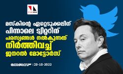 മസ്കിന്റെ ഏറ്റെടുക്കലിന് പിന്നാലെ ട്വിറ്ററിന് പരസ്യങ്ങള് നല്കുന്നത് നിര്ത്തിവച്ച് ജനറല് മോട്ടോര്സ്