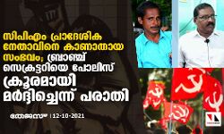 സിപിഎം പ്രാദേശിക നേതാവിനെ കാണാതായ സംഭവം; ബ്രാഞ്ച് സെക്രട്ടറിയെ പോലിസ് ക്രൂരമായി മര്ദ്ദിച്ചെന്ന് പരാതി