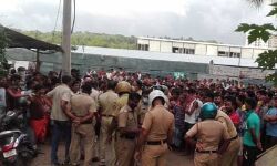 ഇതര സംസ്ഥാന തൊഴിലാളികളും പോലിസും തമ്മില് സംഘര്ഷം; സി ഐയ്ക്കു കല്ലേറില് പരിക്ക്