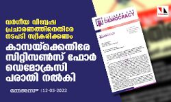 വര്ഗീയ വിദ്വേഷ പ്രചാരണത്തിനെതിരേ നടപടി സ്വീകരിക്കണം; കാസയ്ക്കെതിരേ സിറ്റിസണ്സ് ഫോര് ഡെമോക്രസി പരാതി നല്കി