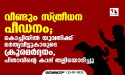 വീണ്ടും സ്ത്രീധന പീഡനം:കൊച്ചിയില് യുവതിക്ക് ഭര്തൃവീട്ടുകാരുടെ ക്രൂര മര്ദ്ദനം;പിതാവിന്റെ കാല് തല്ലിയൊടിച്ചു