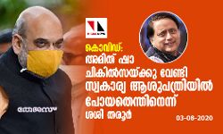 കൊവിഡ്: അമിത് ഷാ ചികില്സയ്ക്കു വേണ്ടി സ്വകാര്യ ആശുപത്രിയില് പോയതെന്തിനെന്ന് ശശി തരൂര്