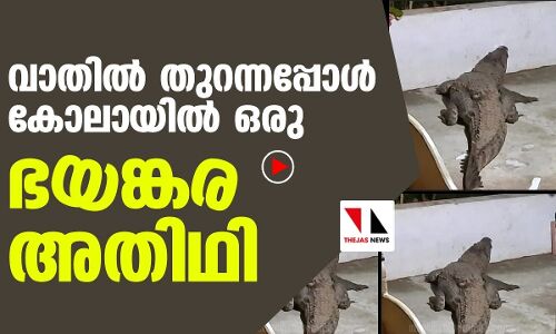 ആതിരപ്പള്ളി പുഴയുടെ തീരത്തെ ആവീട്ടില് രണ്ടുവയസ്സുള്ള കുട്ടി ഉള്പ്പെതാമസിക്കുന്നുണ്ട്. കോലായില് കയറികിടക്കുന്ന പൂര്ണവളര്ച്ചയെത്തിയ മുതലയെ കണ്ട് ഇന്നുപുലര്ച്ചെ വാതില് തുറന്നപ്പോള് ഗൃഹനാഥന് ഞെട്ടിപ്പോയി. പിന്നെ സംഭവിച്ചത് ഇങ്ങനെ