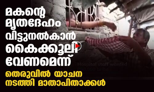 മകന്റെ മൃതദേഹം വിട്ടുനൽകാൻ കൈക്കൂലി വേണമെന്ന്; തെരുവിൽ യാചിച്ച് മാതാപിതാക്കൾ