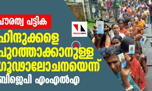 പൗരത്വ പട്ടിക: ഹിന്ദുക്കളെ പുറത്താക്കാനുള്ള ഗൂഢാലോചനയെന്ന് ബിജെപി എംഎൽഎ