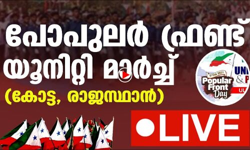 പോപുലര് ഫ്രണ്ട് ഡേയുടെ ഭാഗമായി രാജ്യവ്യാപകമായി സേവ് ദി റിപ്പബ്ലിക്ക് എന്ന പ്രമേയത്തില് നടത്തുന്ന യൂനിറ്റി മാര്ച്ച്. രാജസ്ഥാനിലെ കോട്ടയില് നിന്നുള്ള തല്സമയ ദൃശ്യങ്ങള്.