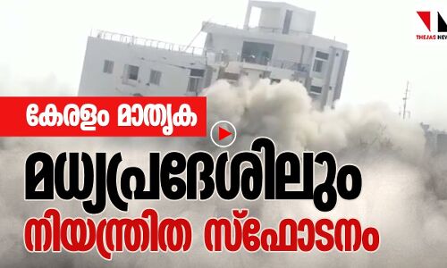 കേരള മാതൃകയില്‍ മധ്യപ്രദേശില്‍ നിയന്ത്രിത സ്‌ഫോടനത്തിലൂടെ അനധികൃത കെട്ടിടം തകര്‍ക്കുന്നത്തിന്റെ ദൃശ്യം.