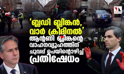 ആന്റണി ബ്ലിങ്കന്റെ വാഹനവ്യൂഹത്തിന് ചുവപ്പ് പെയിന്റൊഴിച്ച് പ്രതിഷേധം|THEJAS NEWS