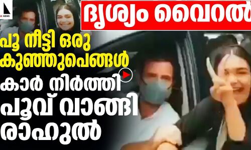 കാര്‍ നിര്‍ത്തി കുട്ടികളോട് പൂ വാങ്ങി രാഹുല്‍