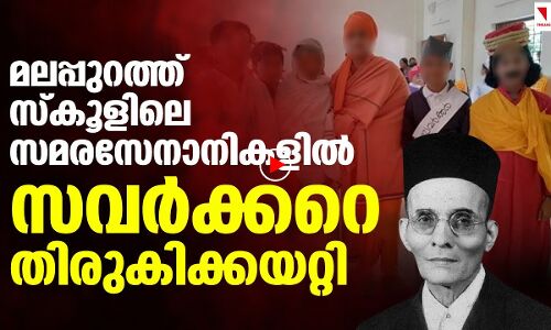മലപ്പുറം ജില്ലയിലെ കിഴുപ്പറമ്പ് ഗവ. വൊക്കേഷനല് ഹയര് സെക്കന്ഡറി സ്കൂളിലെ ഘോഷയാത്രയിലാണ് സവര്ക്കറെ തിരുകിക്കയറ്റിയത്.