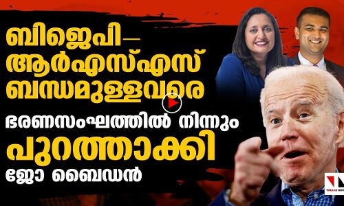 തന്റെ ഭരണസംഘത്തില്നിന്നും ബിജെപി ആര്എസ്എസ് ബന്ധമുള്ളവരെ പുറത്താക്കുകയാണ് ജോബൈഡന് . ആദ്യപടിയായി രണ്ടുപേര് പുറത്ത്. അതെ സമയം പൗരത്വ നിയമഭേദഗതിക്കെതിരേ ശക്തമായ നിലപാടെടുത്തിട്ടുള്ളവരെ സംഘത്തിലെടുത്തിട്ടുമുണ്ട്