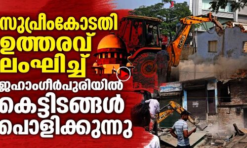 ജഹാംഗീര്പുരിയില് അനധികൃതമെന്നാരോപിച്ച് മുസ്ലിംകളുടെ കെട്ടിടങ്ങളും സ്വത്തുവകകളും ബുള്ഡോസര് ഉപയോഗിച്ച പ്രാദേശിക ഭരണകൂടം പൊളിച്ചുനീക്കുന്നു. നടപടി സുപ്രീംകോടതി സ്റ്റേ ചെയ്തെങ്കിലും അത് അറിയാത്തഭാവത്തിലാണ് പൊളിക്കല് തുടരുന്നത്