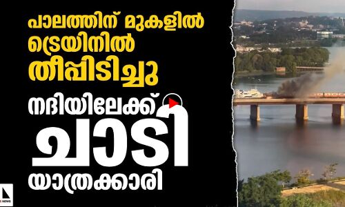 തീപ്പിടിച്ച ട്രെയിനില്‍ നിന്ന് യാത്രക്കാരി നദിയിലേക്ക് ചാടി