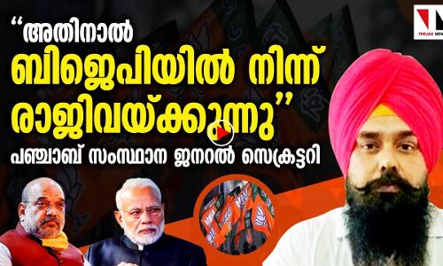 ബിജെപിയില്‍ നിന്നു രാജിവച്ച് പഞ്ചാബ് സംസ്ഥാന ജനറല്‍ സെക്രട്ടറി