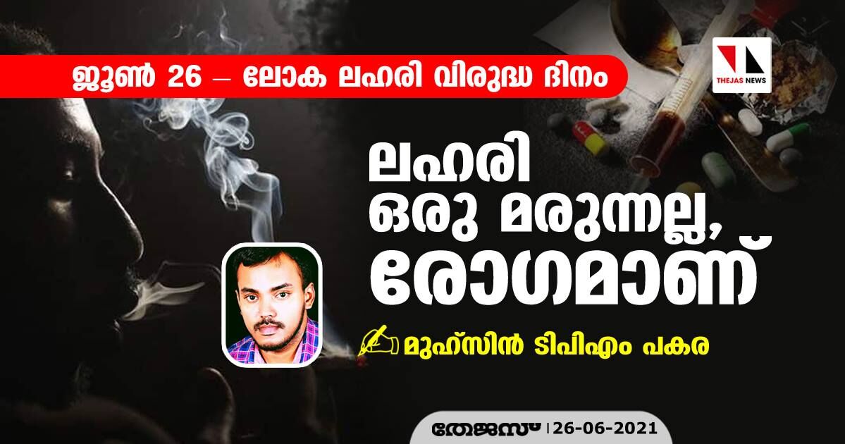 ജൂണ് 26-ലോക ലഹരി വിരുദ്ധ ദിനം: ലഹരി ഒരു മരുന്നല്ല, രോഗമാണ്