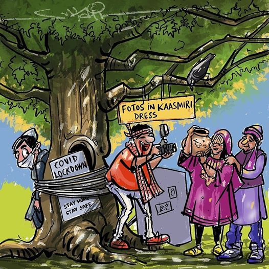 കൊവിഡിന്റെ കാലത്തെ കാശ്മീര് എന്താണെന്നും പുറത്തു വരുന്ന വാര്ത്തകള് നിര്മിച്ചെടുക്കുന്നവയാണെന്നും കാണിക്കുന്ന കാര്ട്ടൂണ് അടുത്ത കാലത്താണ് സുഹൈല് വരച്ചത്.