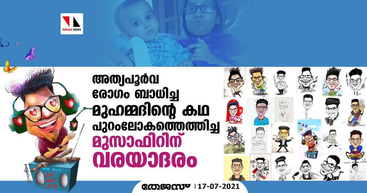 അത്യപൂര്വ രോഗം ബാധിച്ച മുഹമ്മദിന്റെ കഥ പുറംലോകത്തെത്തിച്ച മുസാഫിറിന് വരയാദരം