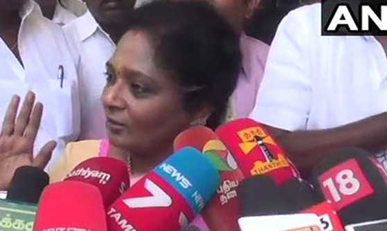 തൂത്തുക്കുടി: തൂത്തുക്കുടി വിമാനത്താവളത്തില് വച്ച് ബിജെപിക്കെതിരേ മുദ്രാവാക്യം വിളിച്ച എഴുത്തുകാരിയും മാധ്യമപ്രവര്ത്തകയുമായ